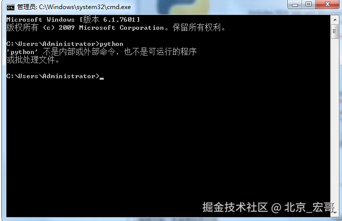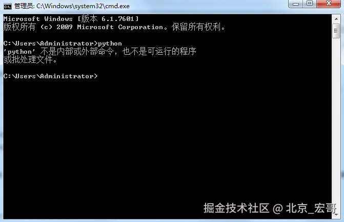 13.验证失败,如果在安装的过程你选择了添加到环境变量中,输入python就会直接进入python的环境中,现在开始演示手动添加到环境变量: