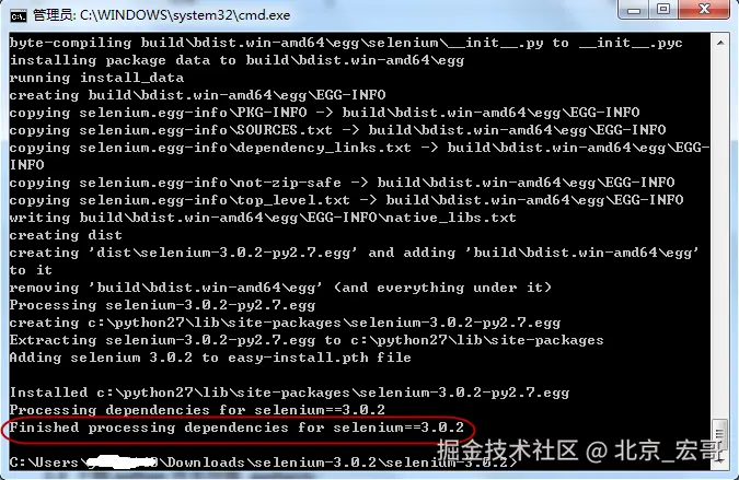 还有一种安装方式,在线安装,在cmd输入 python -m pip install selenium,然后回车,自动安装。