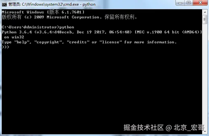 18.当你输入python出现如下命令时则表示python环境已经安装好了,就可以进行python之旅了。