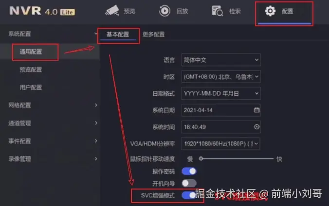 提醒:其次部分录像机开启“SVC增强模式”后可提升解码能力,也可尝试开启SCV模式增强解码能力(部分录像机版本支持,设置路径如下: