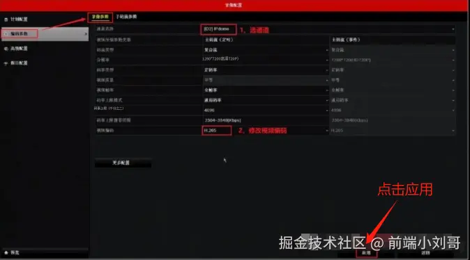 1、如果主机是NVR 3.0老版本,提示“资源不足”,还有可能是不支持H.265编码,可修改视频编码测试: