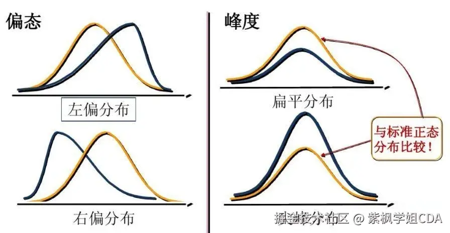 偏态分布:数据分布不对称,分为正偏态(右偏)和负偏态(左偏)。正偏态分布中,数据的长尾在右侧,即较大值的一端;负偏态分布则相反,长尾在左侧。例如,一些产品的价格分布可能是正偏态,少数高价产品拉高了均值。