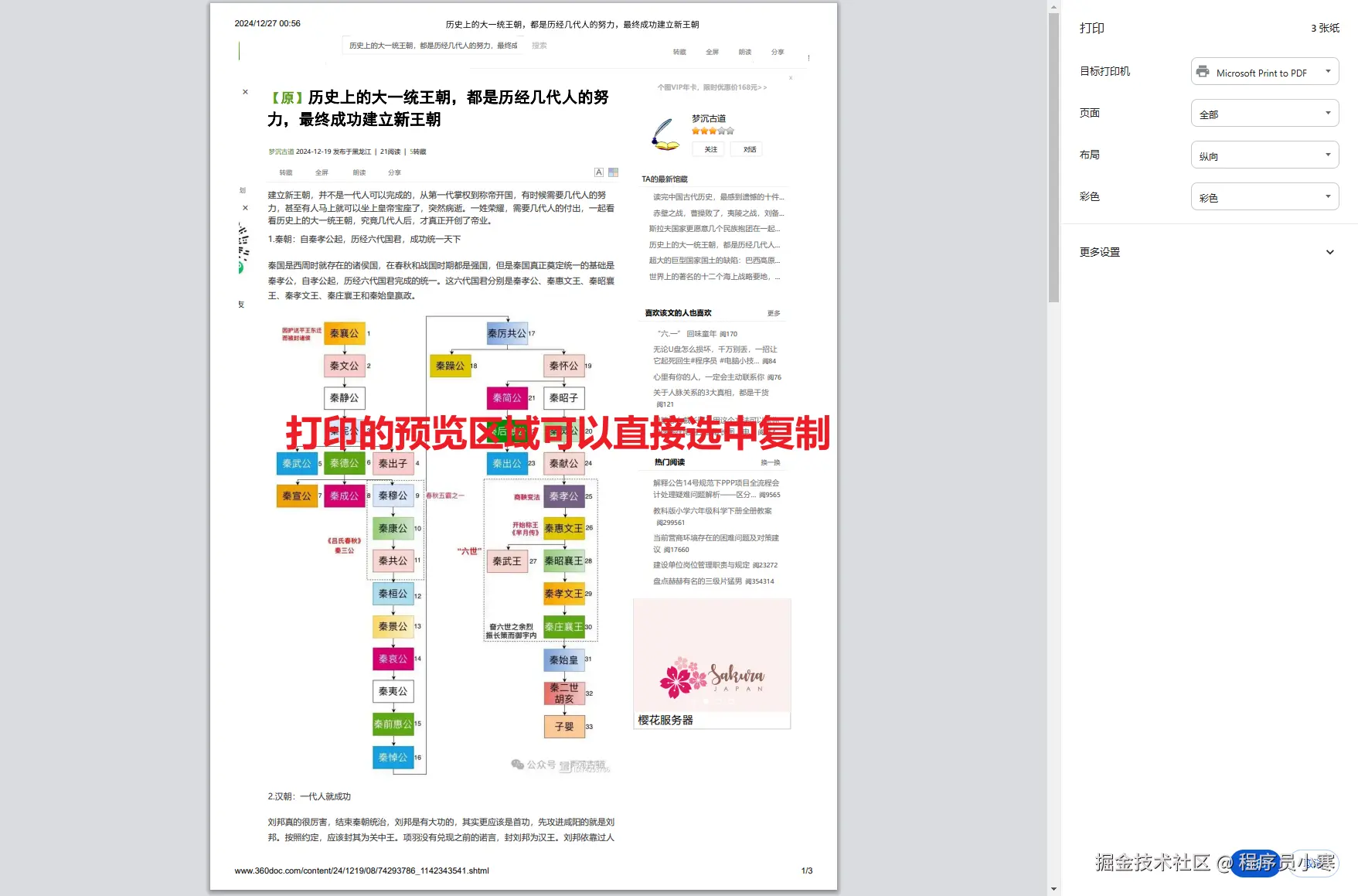 在网页中,我们可以按Ctrl + p进行打印界面,然后我们可以直接在打印左侧的预览区域中直接选中文本进行复制,十分方便。