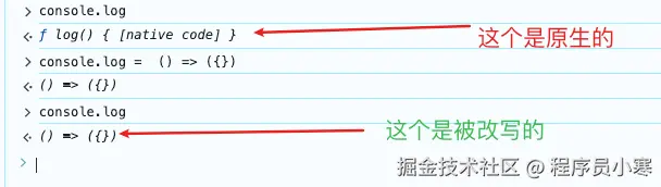 - 在控制台上直接输出一下,看有没有「native code」输出
