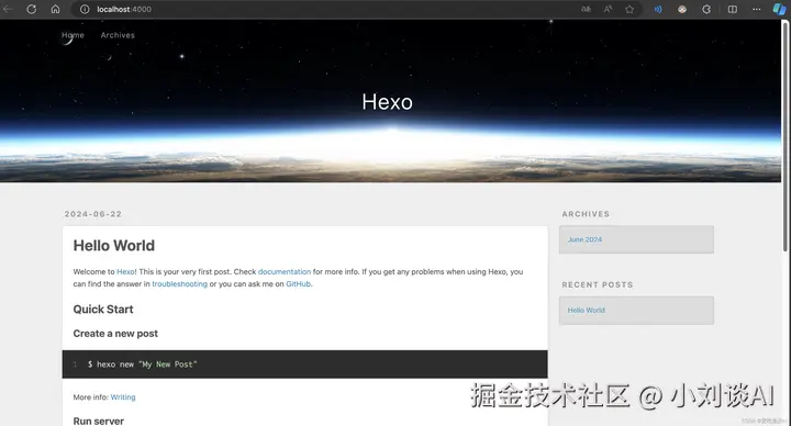 浏览器访问 http://localhost:4000/ 出现下图说明启动成功