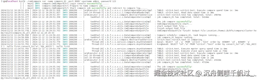 | ./cmdcompare run -name compare_01 -port 8089 -username admin -password 123 | 再次执行已有的校验任务 |