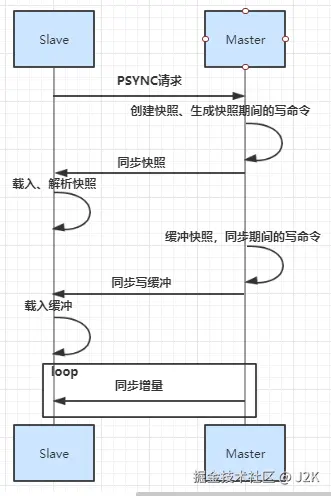 - 主节点发送 RDB 文件:当主节点的bgsave操作完成后,会将生成的 RDB 文件发送给从节点。从节点接收到 RDB 文件后,会将其保存在本地,并直接作为从节点的数据文件。
