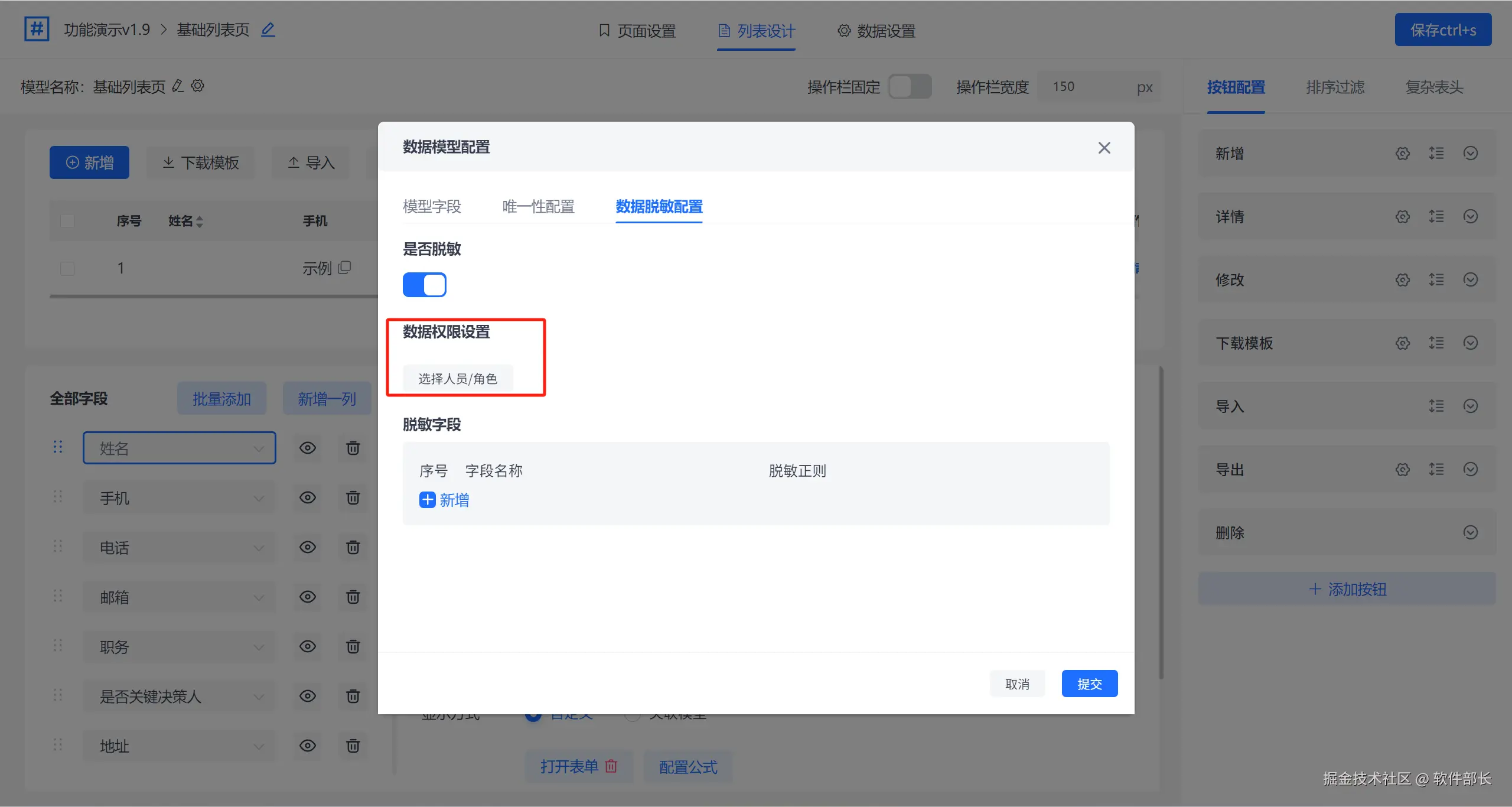 - 脱敏设置:主要用于对数据模型中的脱敏展示