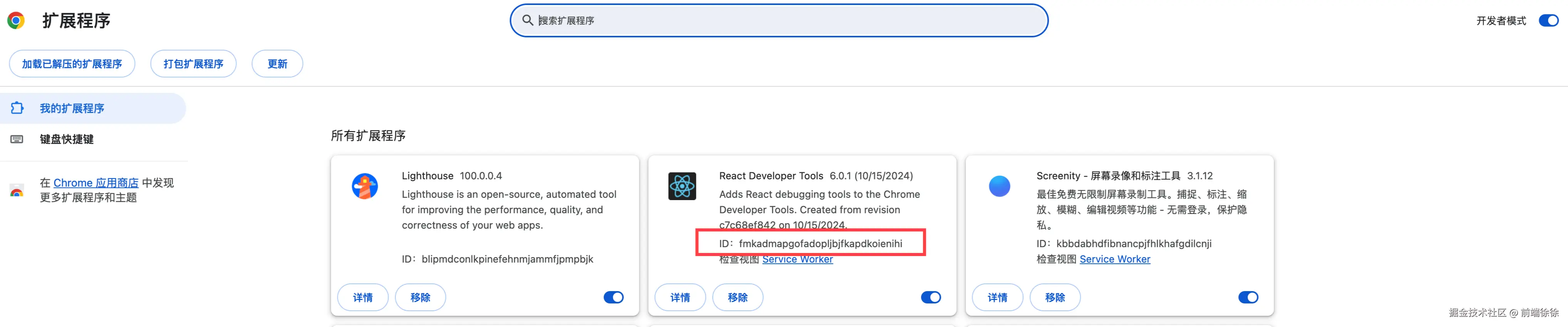 如果你不用 npm 工具包扩展的话,electron 也支持手动扩展插件。依然以 React Developer Tools 为例子,大概步骤如下:
