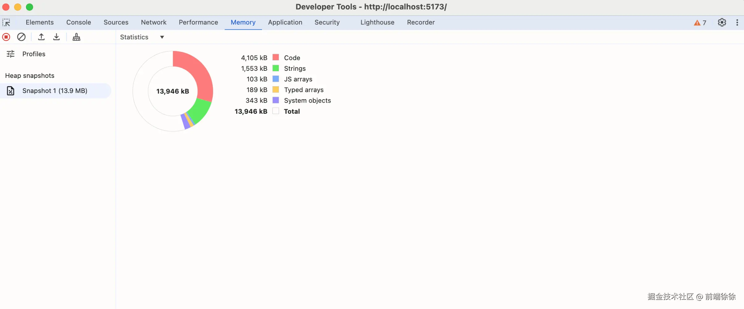 这个就是一个统计图,列出了源码脚本、字符串对象、数组对象等所消耗内存的占比及数量,可以让你直观地看到不同类型的资源的内存占用情况,然后针对性的优化占比较高的资源。