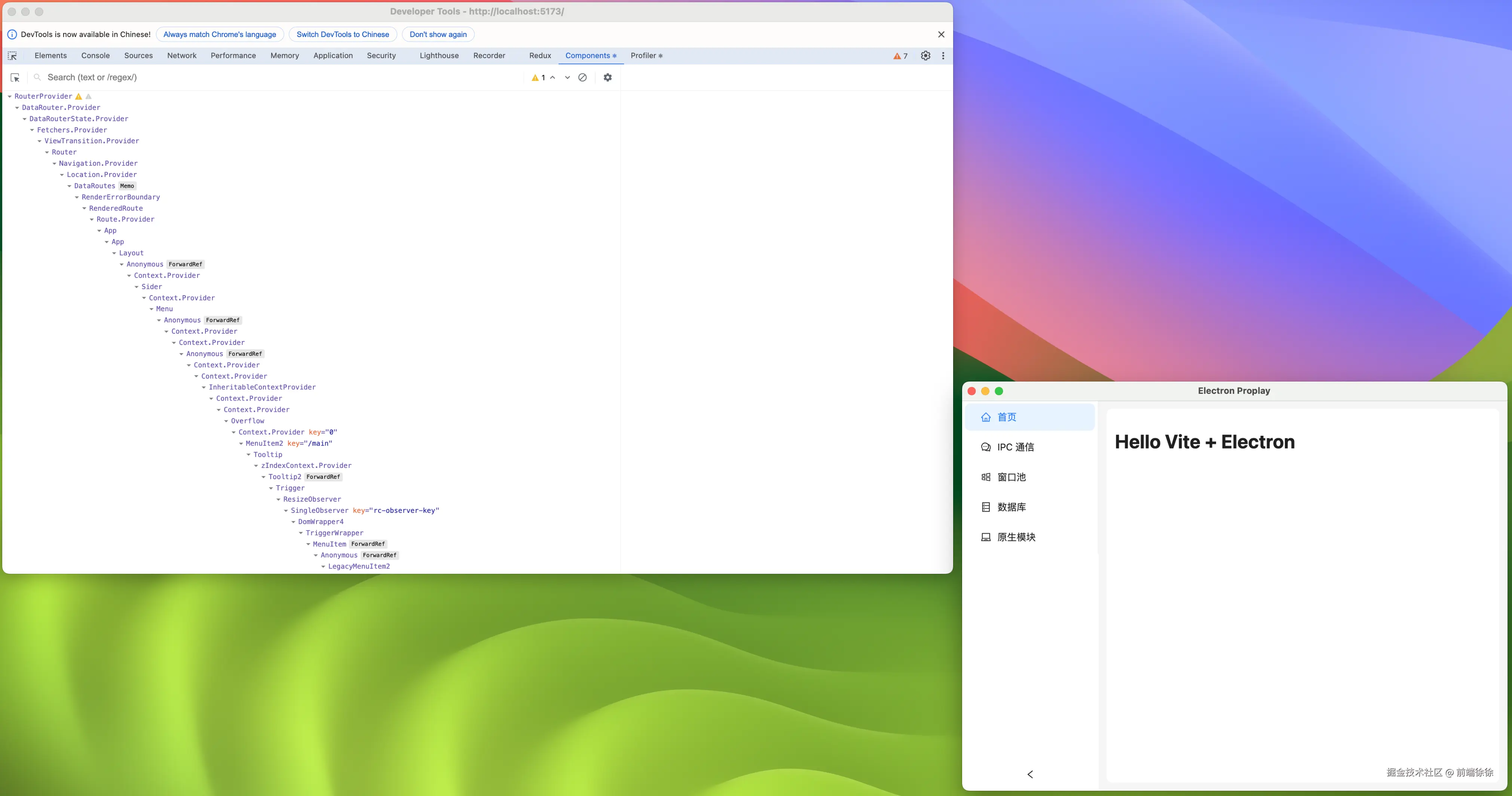 不过 react develop 插件在某些 electron 版本中首次加载的时候并不能正常使用,需要 reload 一下整个应用才能成功使用。这里有相应的 issue:github.com/electron/el…