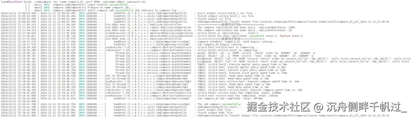 5) 执行命令创建并执行任务名为“compare_01”的详细校验任务