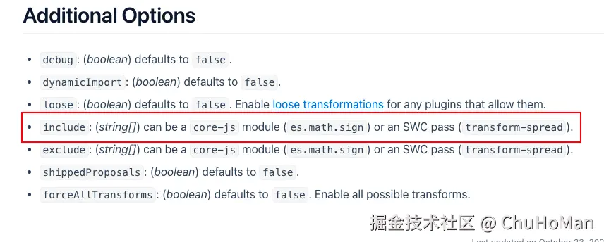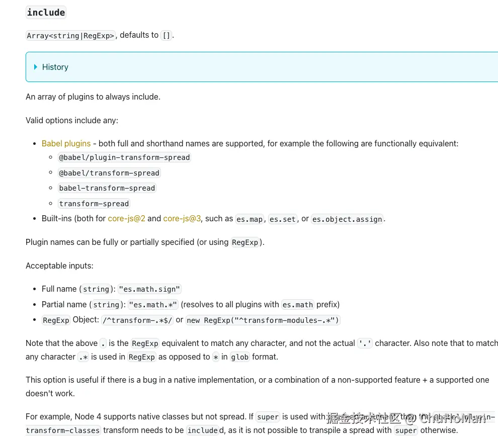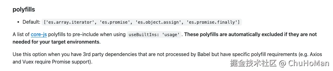 这一步就很简单了,目的是为了发布库后,可以让使用的用户能将 polyfills 注入到应用项目的 babel/swc 配置当中。核心代码: