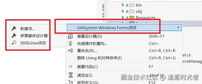 - 下载本插件工具,关闭Visual Studio 2022,直接双击GTKWinformVSIXProject.vsix文件安装(本框架下的工程,Studio没有添加Form模板项,需要安装此插件)。