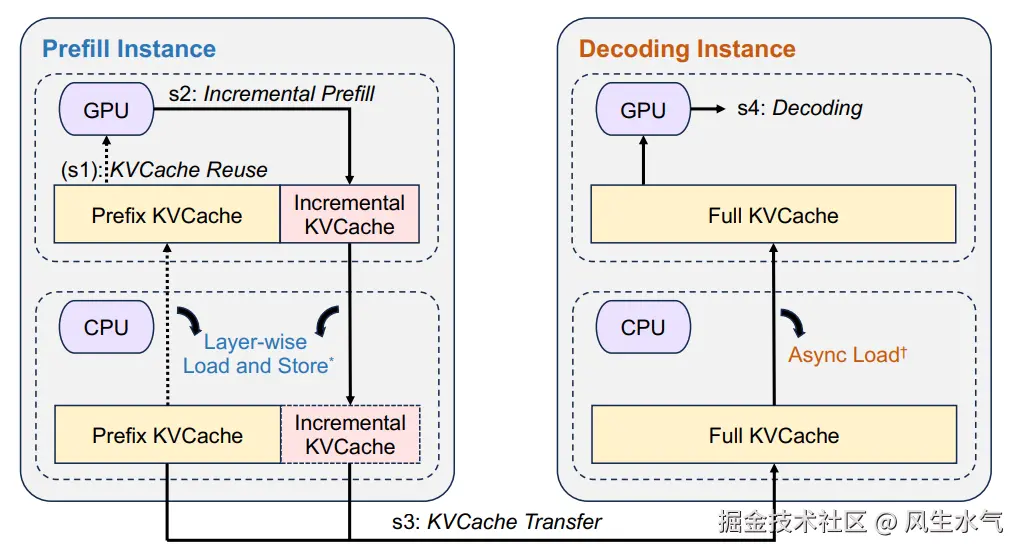 - 在请求来临时,KVCache-centric Conductor会分配一对Prefill和Decode实例用于后续该请求的处理。