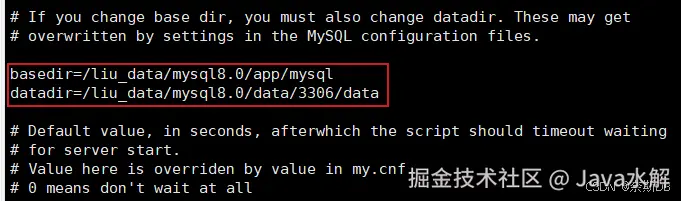 [root@mgr1 3306]# cd /liu_data/mysql8.0/app/mysql/support-files ###MySQL的目录,这里以实际安装的目录为准哦 [root@mgr1 support-files]# cp mysql.server mysql.server.bk [root@mgr1 support-files]# vi mysql.server ###作用就是为了方便启动和关闭mysql服务,这个脚本中调用mysqld_safe来启动mysqld。以下是mysql.server需要修改的内容**修改一: **目录和数据存储目录