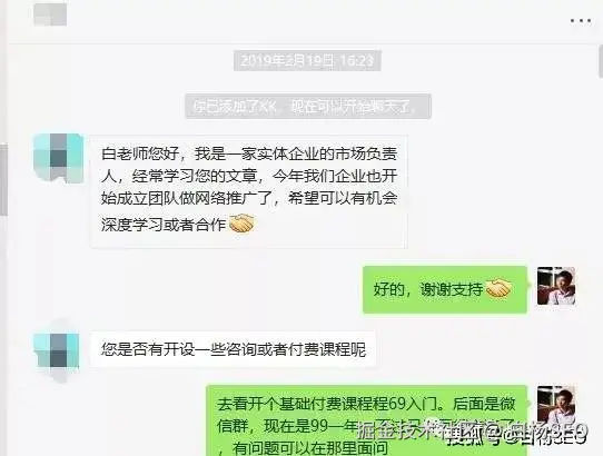 每天都有朋友从知乎或者别的地方加过来,你可能说SEO我因为久了,确实白杨SEO有点虚名,但我现从事的二类电商呢,同样用了文章有加过来,不用说我之前靠一篇写作抖音文章,到现在还是不断有人加过来。