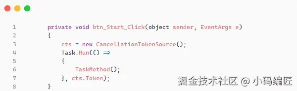 停止线程按钮的事件里,只需要调用cts的Cancel方法即可: