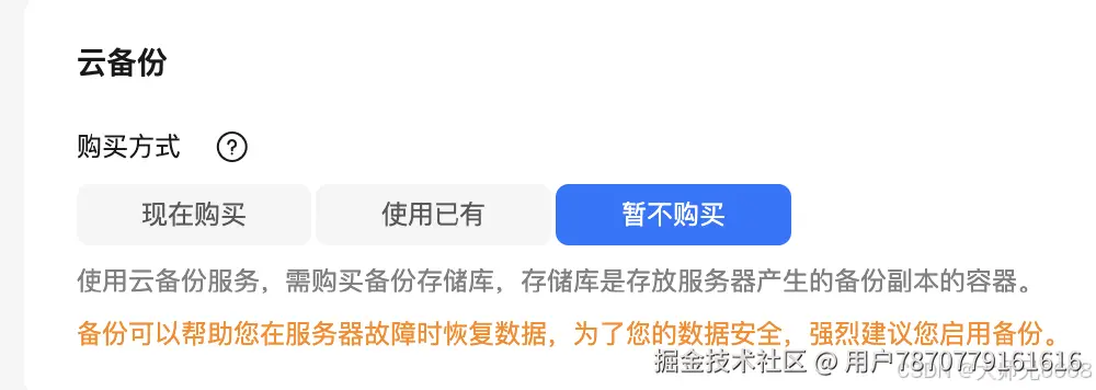 云备份功能很强大,对于数据安全要求比较高的小伙伴,容灾方案可以考虑开启这个功能。我这里只是进行体验,就暂时不开通这个功能了。