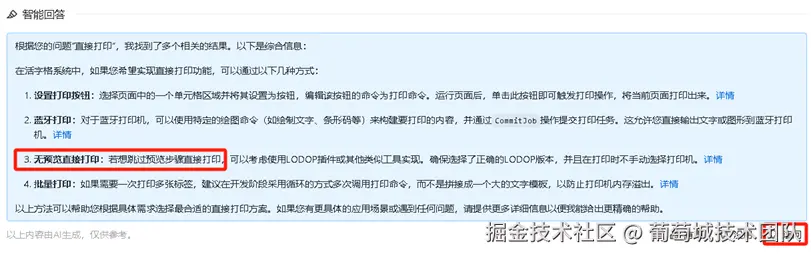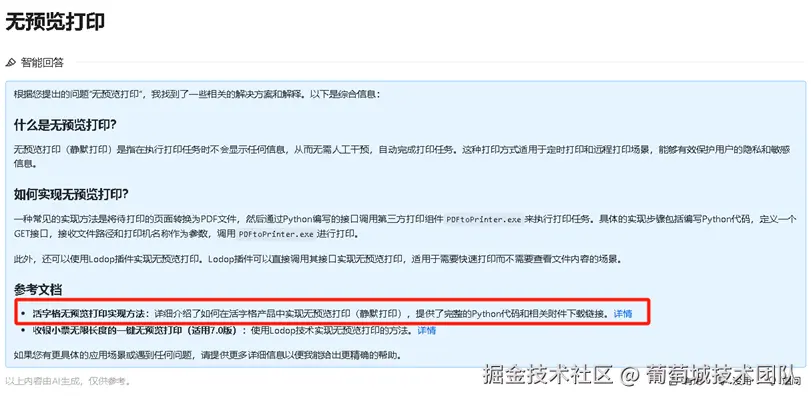 得到的结果里,第一个就是一份很全面的打印方案,里面第四部分就有静默打印的完整方案。