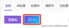 入口2:主要产品的求助中心板块,发新帖按钮的右侧,点击“去问AI”按钮。