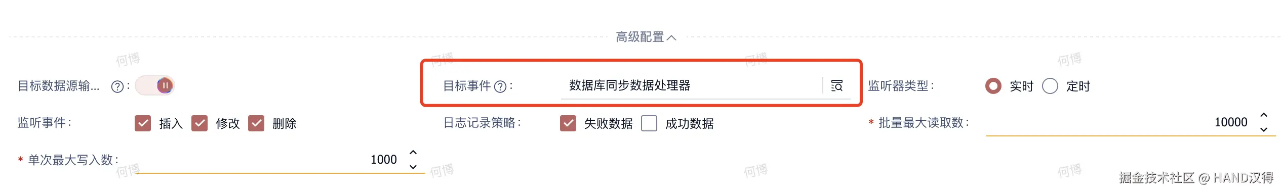 当同步器监听到数据变动时,可通过配置目标事件将变动数据进行转发,用于业务监听事件进行业务场景处理。