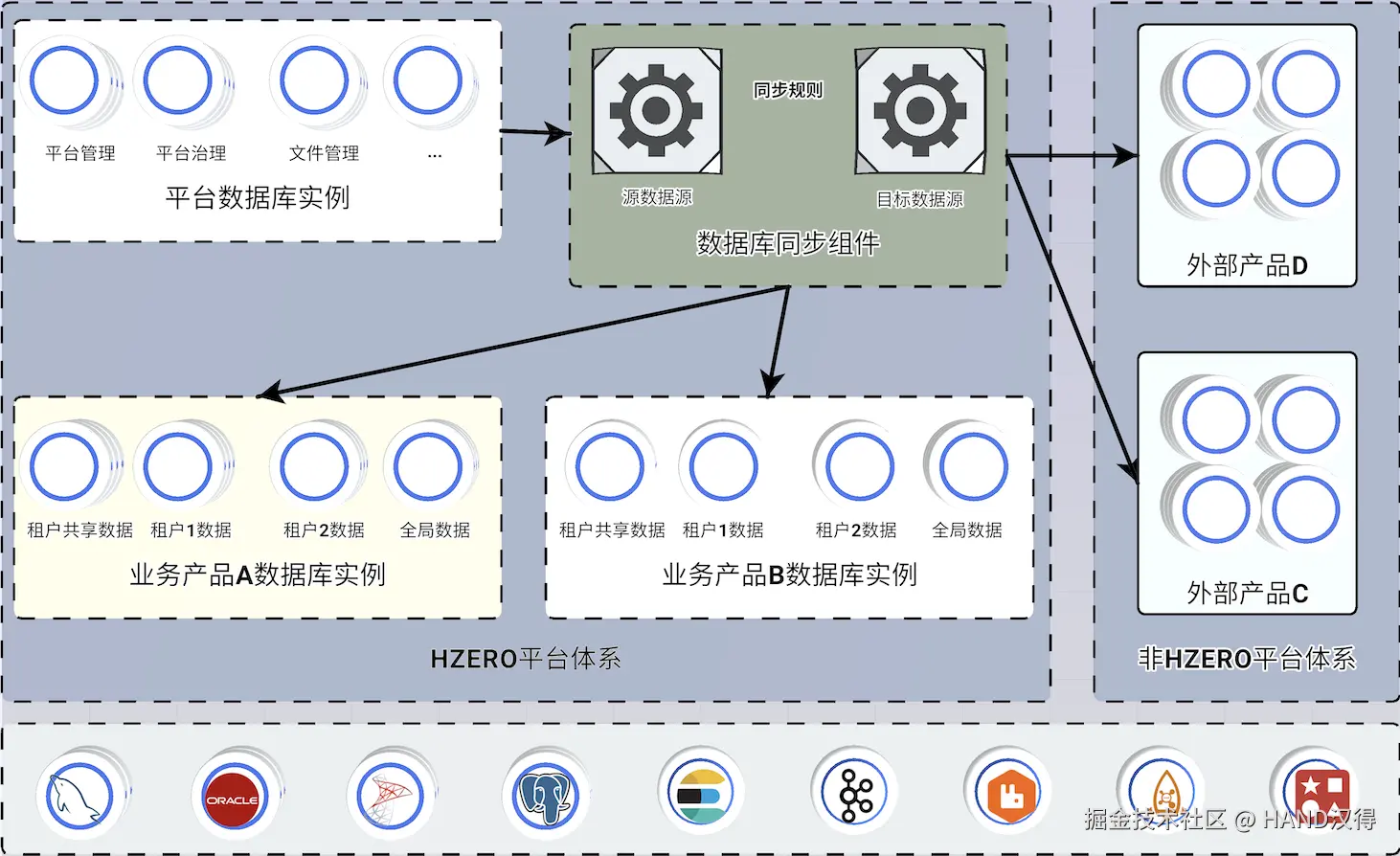 汉得H-ZERO 企业级PaaS平台(以下简称HZERO平台) ,凭借丰富的企业资源管理实践经验,深刻洞察用户在使用过程中的痛点。我们为您量身定制了一套高效、功能强大的数据库同步解决方案。该方案旨在简化企业在进行系统间数据同步过程的复杂性,提升开发效率并实现管理的便捷化。