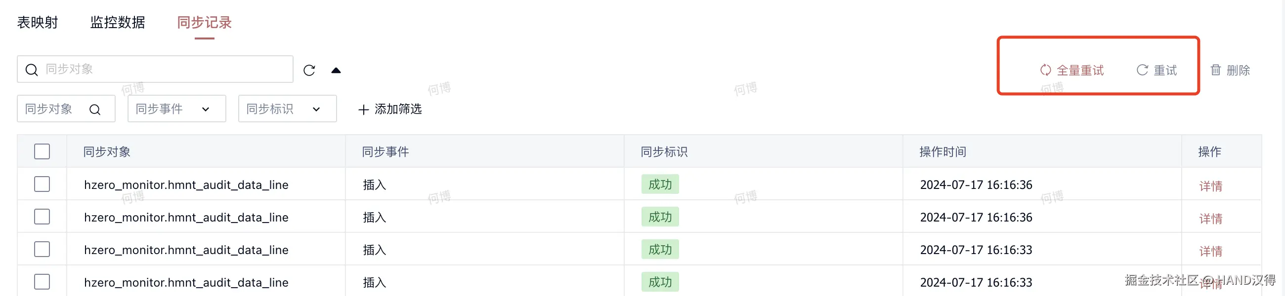 对执行的数据同步进行日志监听与记录,并支持错误数据重试。