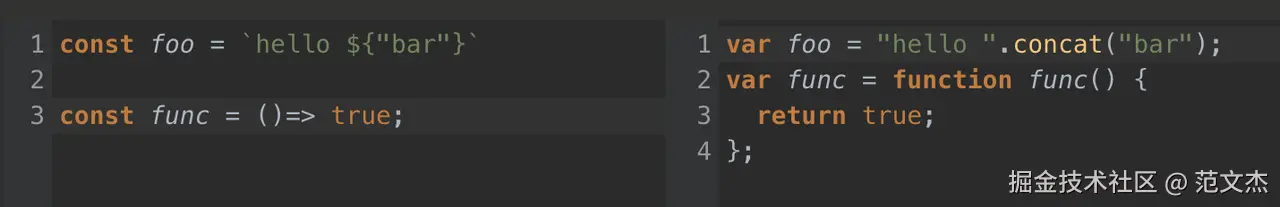 在没有辅助工具加持的情况下,这会导致编写代码时总需要花费额外的时间精力“人工”确认某些新语言特性在目标浏览器上是否能够正常运行,这明显是一种非常低效的处理方式!为此,我们可以使用一些语法工具(如 Babel),自动将高版本语法等价转换为相应的低版本语法实现,向下获得更宽广的兼容范围,例如: