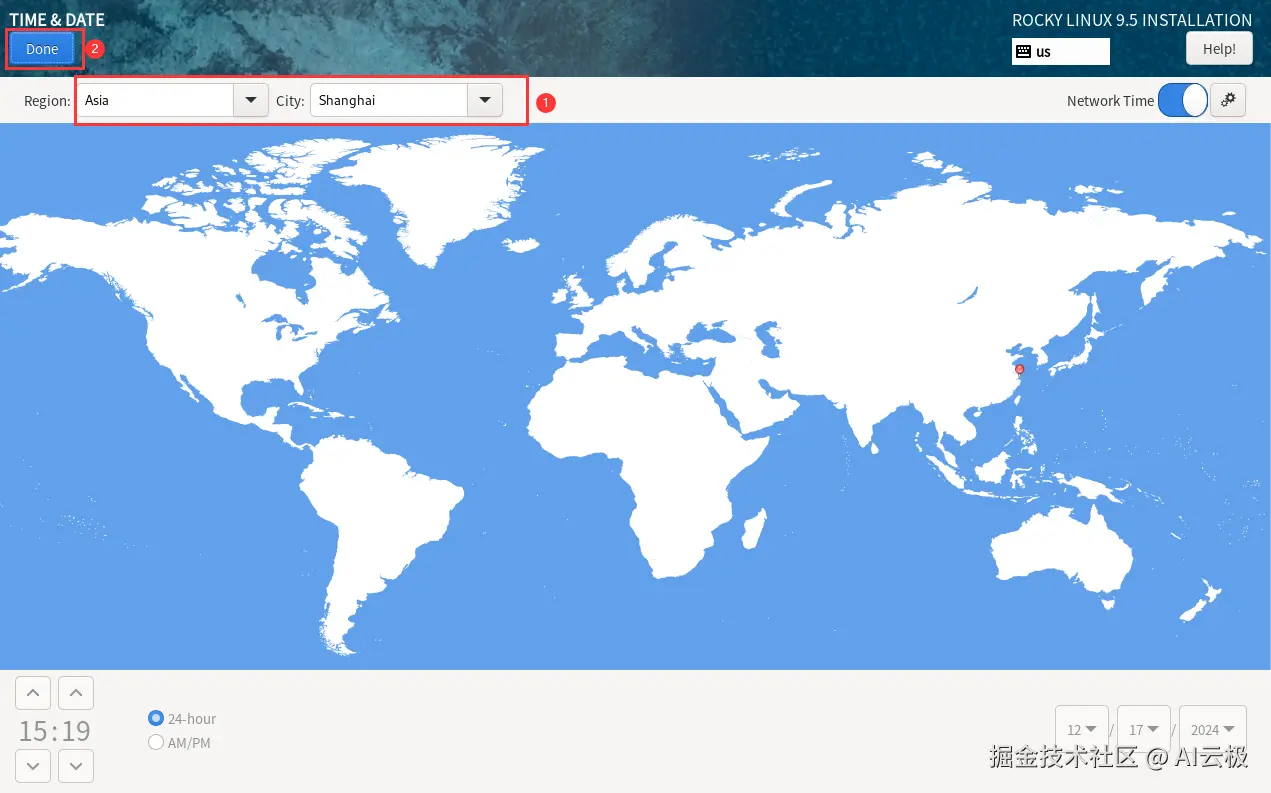 设置时区(Time & Date),点击地图上的上海,点击执行(Done)