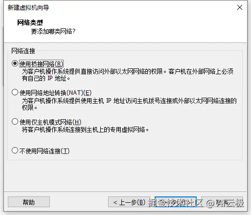 NAT网络:将虚拟机的网络流量通过宿主机进行转发,使虚拟机可以访问外部网络,但外部网络无法直接访问虚拟机。