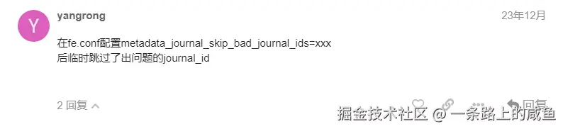 可以看到这个异常和使用过 metadata_journal_skip_bad_journal_ids 这个配置有关,回想5月16那天是否对StarRocks进行过相关操作。