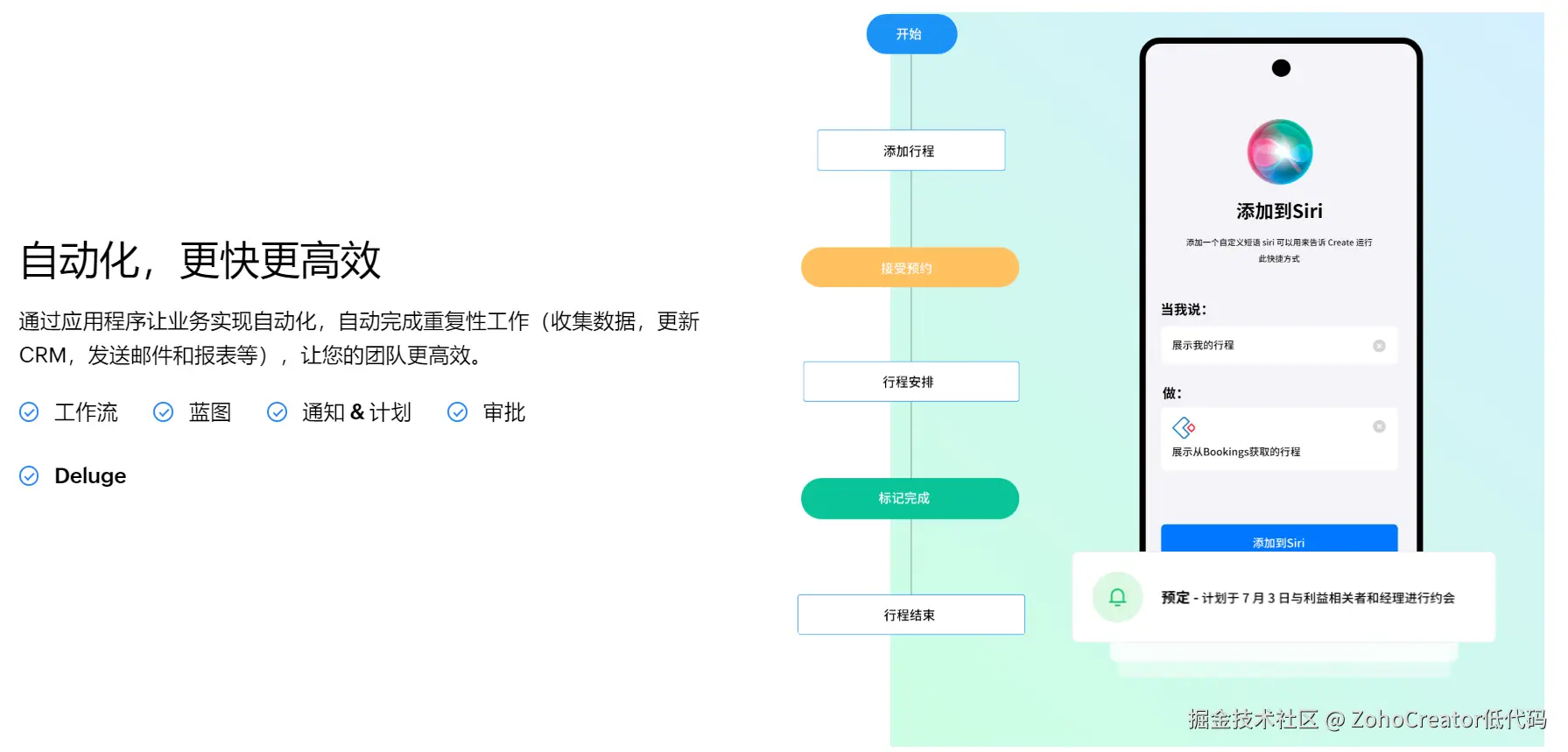 Zoho Creator内置的AI引擎可以根据预设规则自动触发特定的工作流程,例如提交审批请求、分配任务给相关人员等。这种智能化的工作流管理有助于提高操作效率,减少人为错误。