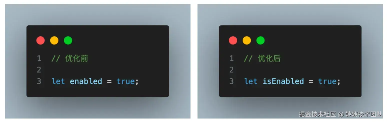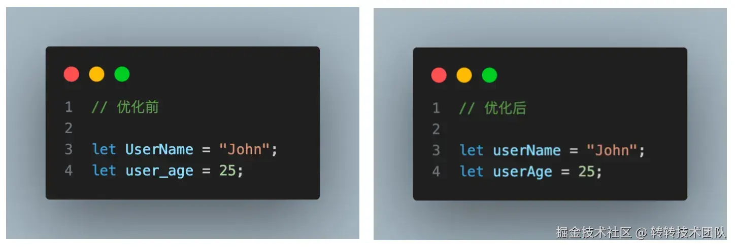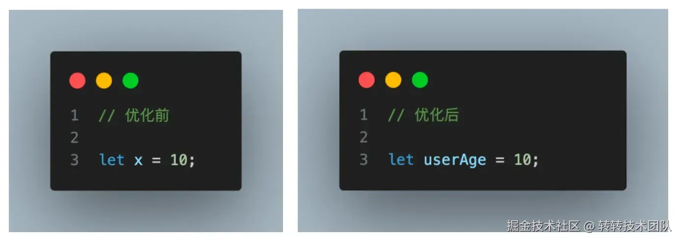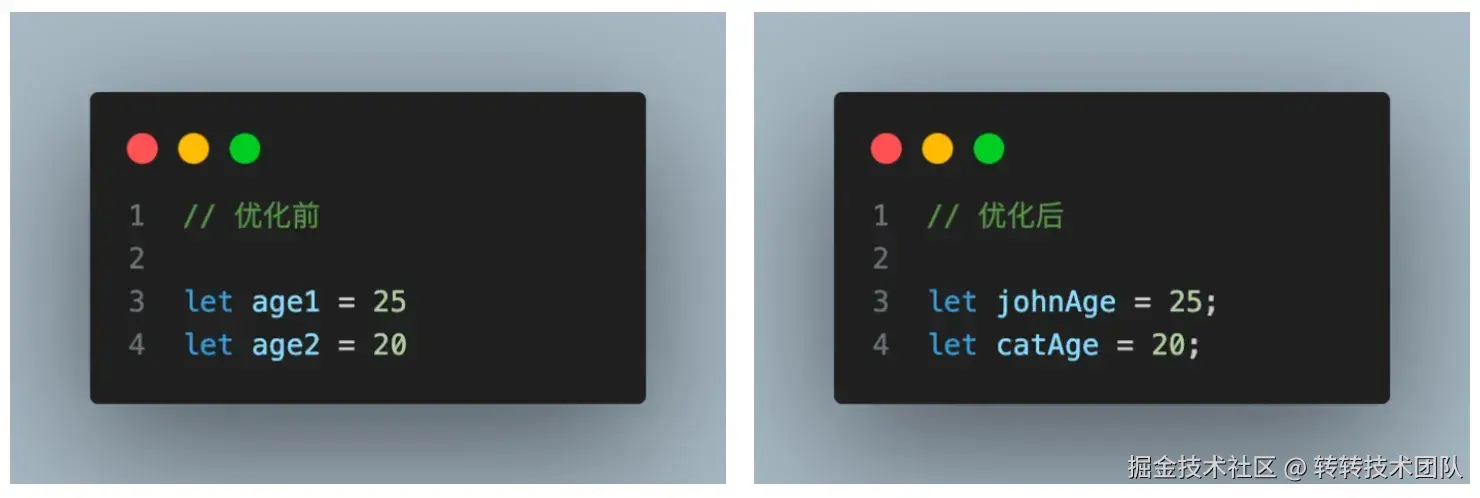 变量命名应当具有明确性,简洁性,一致性,如: