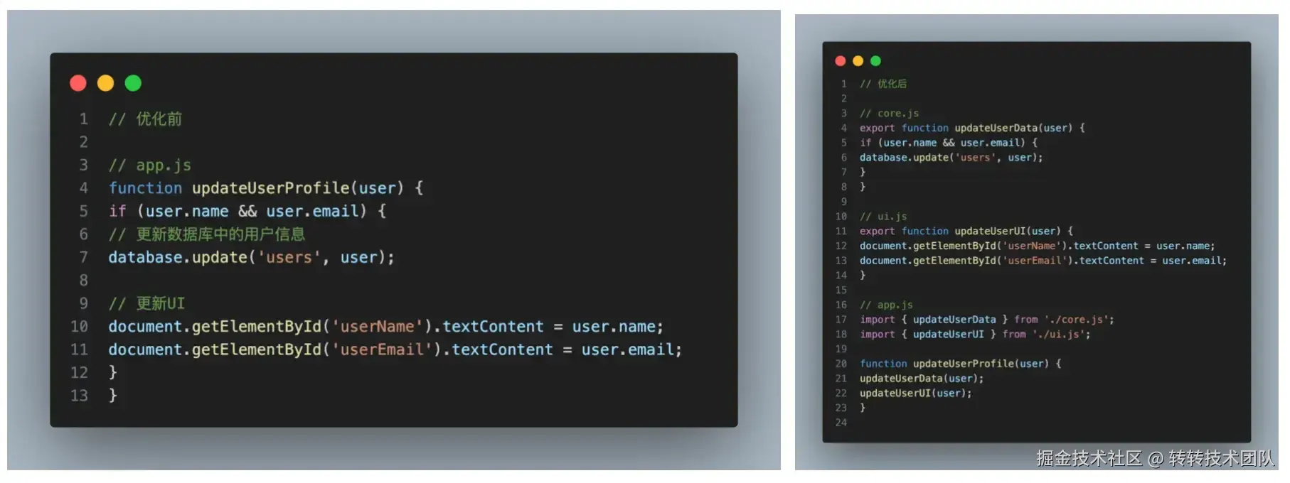 - 将一些复杂逻辑分离到独立函数中以便于维护