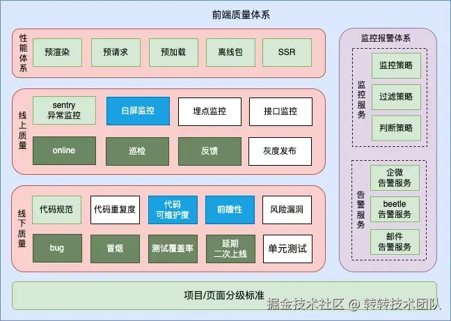 随着转转各业务方向经历长周期的迭代,前端工程的代码可维护性逐渐下降。为应对这一问题,转转前端团队于 2023 年启动了前端质量体系建设。该体系旨在通过统一质量标准、明确优化范围、逐步解决工程遗留问题等手段,全面提升前端代码的可维护性。与本篇文章密切相关的是下图中的代码可维护度部分。