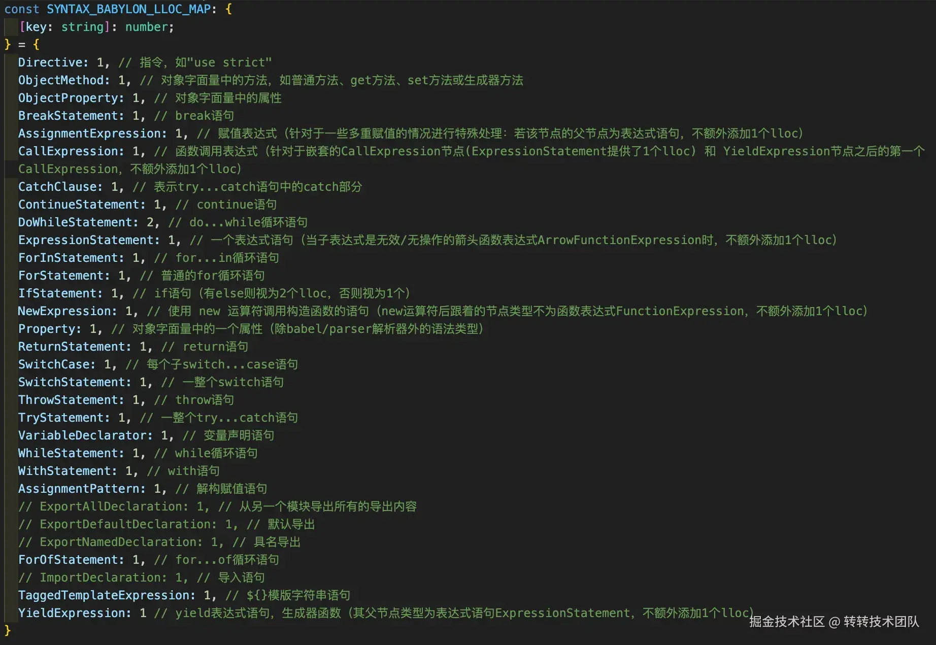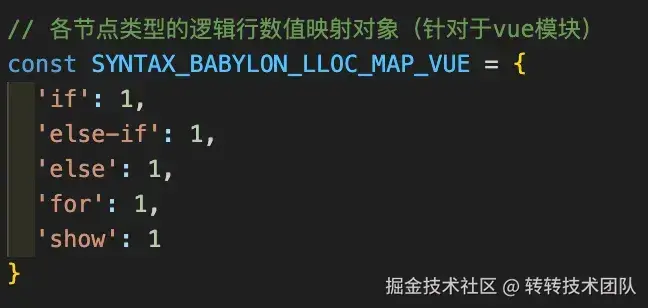 自定义相关代码语句类型节点对应逻辑行数的映射对象