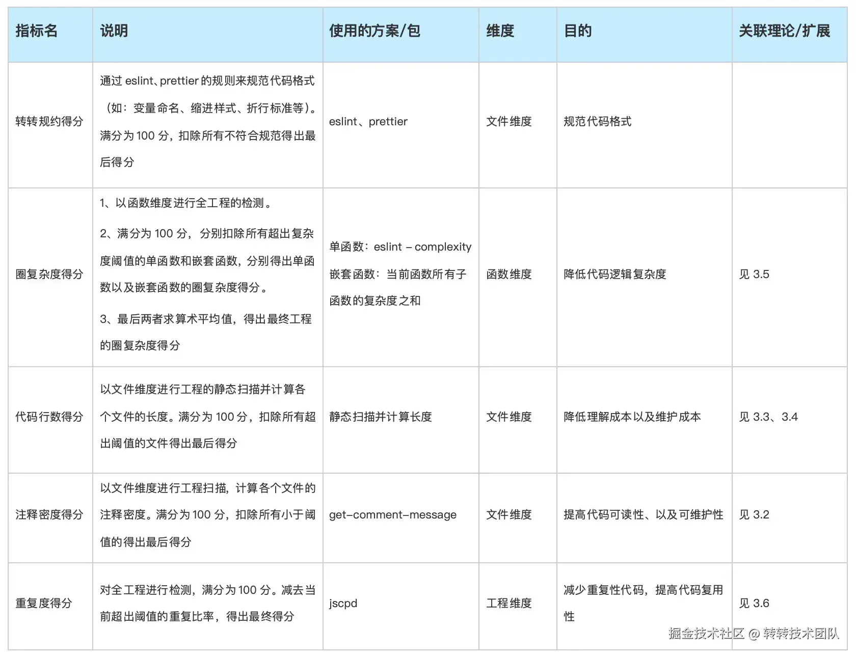 转转前端团队在结合自身现状以及控制改动范围、改动工作量的前提下,目前代码可维护度相关的实际落地指标是以下 5 个: