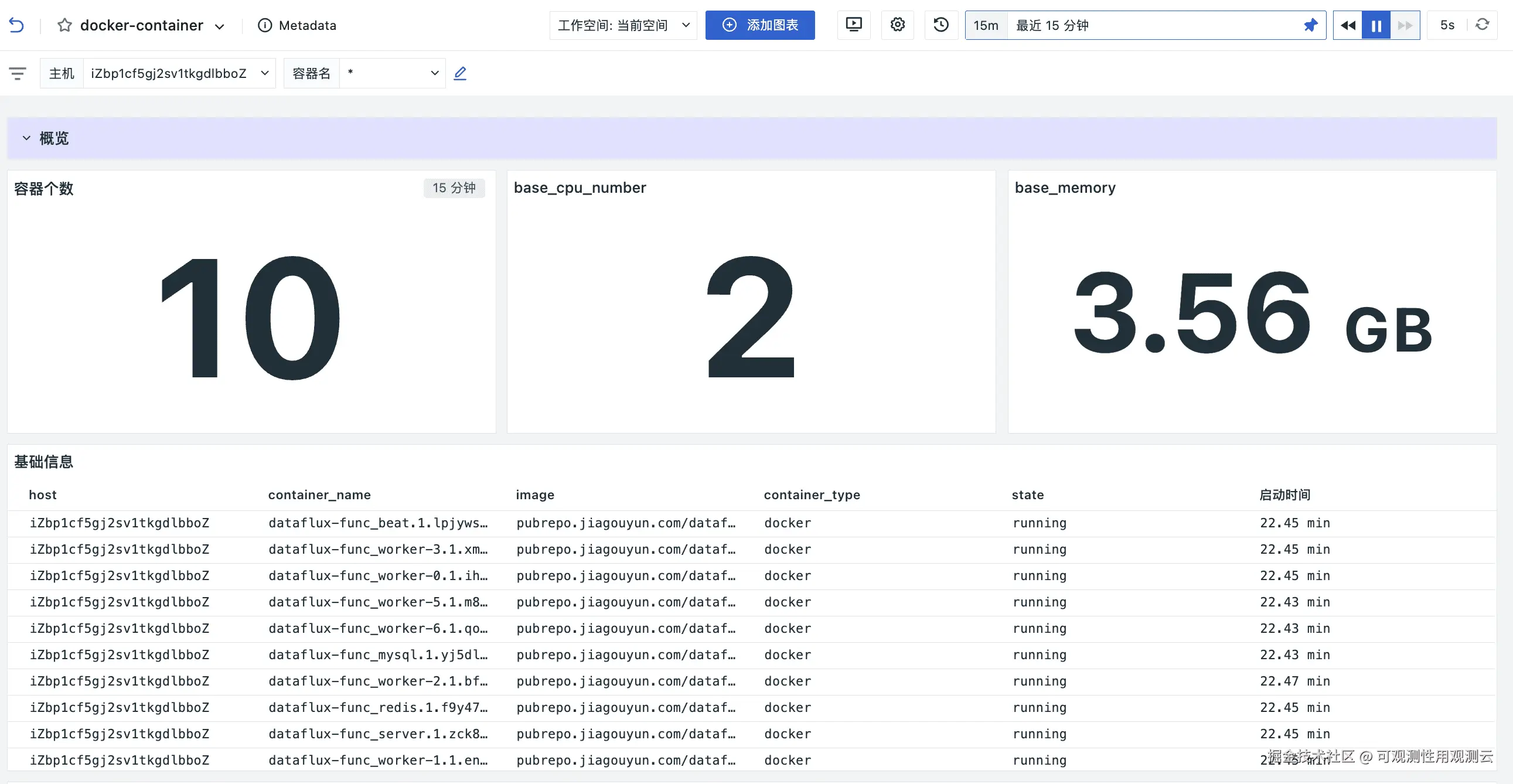 在观测云的助力下,一键部署 Agent,自动采集 Docker 相关的日志、指标等数据, 在平台一键开启监控 Dashboard 和监控器,实时观测容器运行情况,使容器可观测性变的方便、快捷、高效。