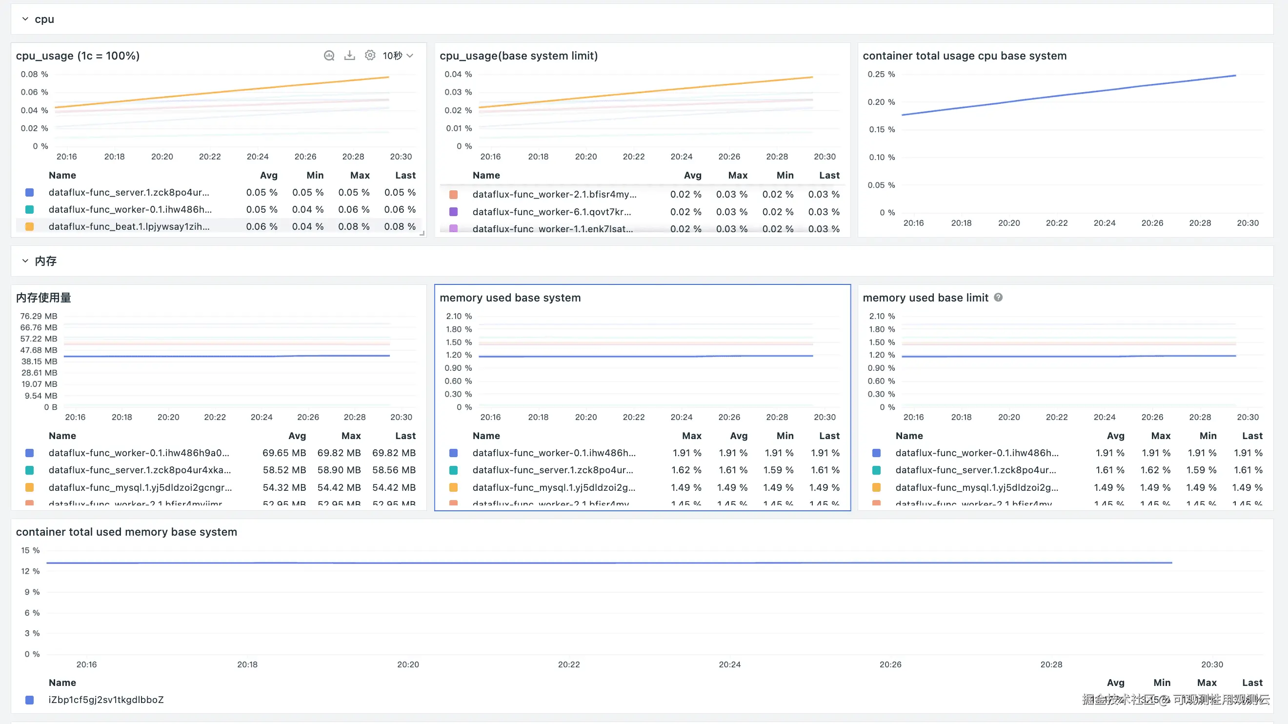 | mem_used_percent_base_limit | The percentage usage of the memory is calculated based on the limit. | float | percent |