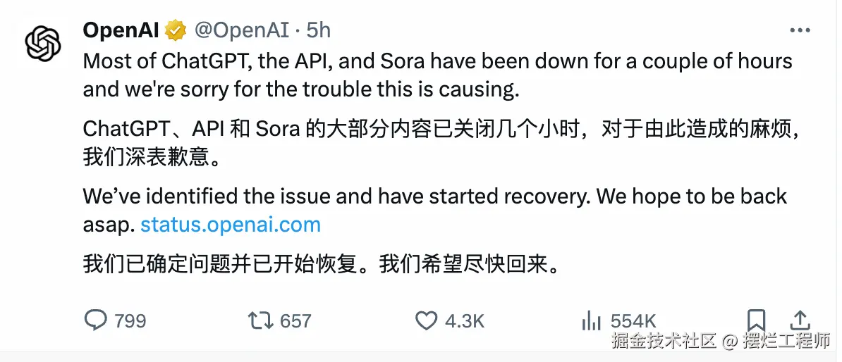 今天又监控到了ChatGPT的严重宕机事件,很多用户无法登录、无法打开。