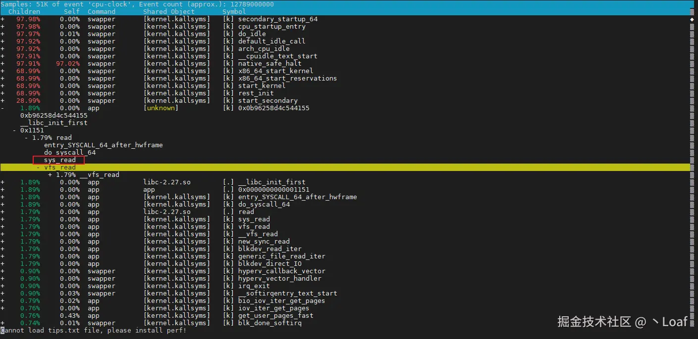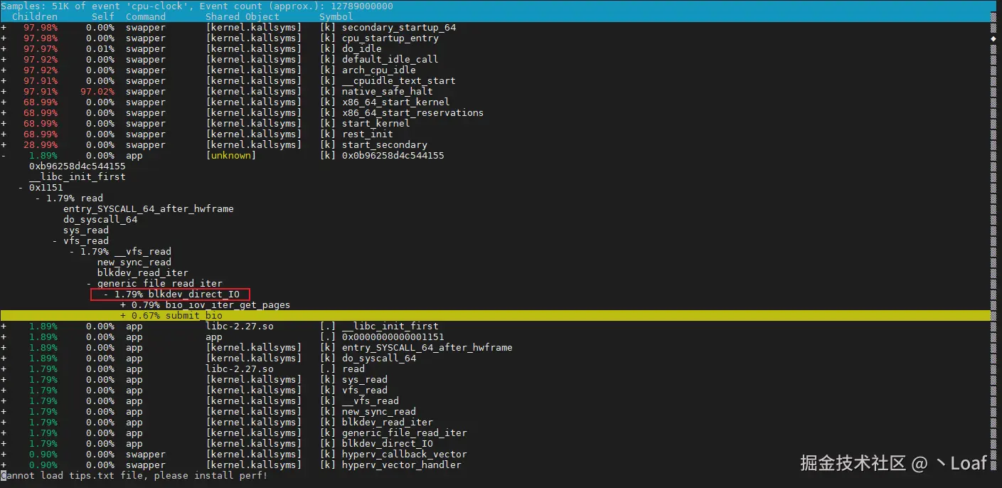 确实有read,上面的swapper先忽略。继续展开会发现做了大量的DIO