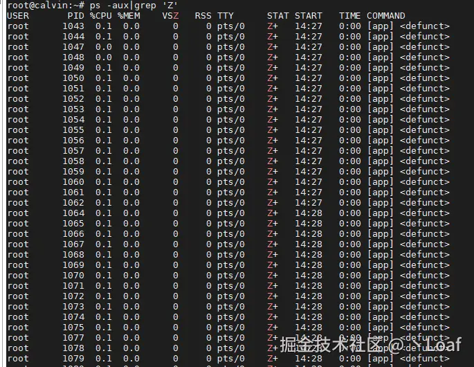 变成了Z,僵尸进程。此时继续使用perf命令排查