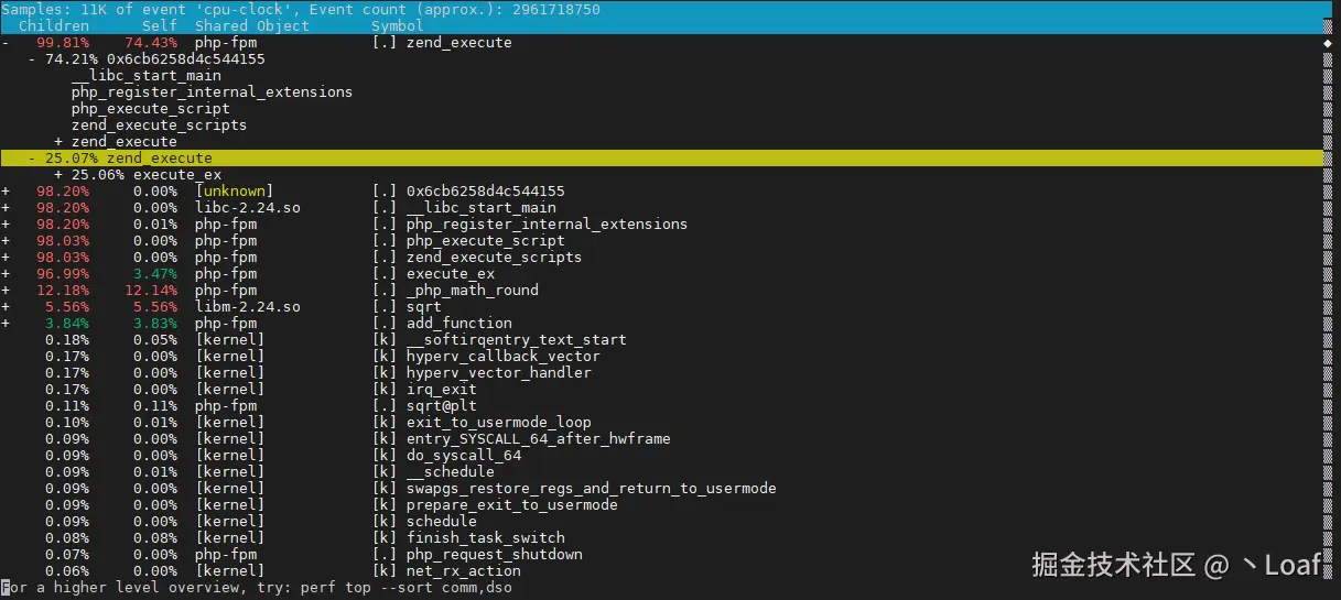 使用perf等性能分析工具,进一步排查具体函数或系统调用: