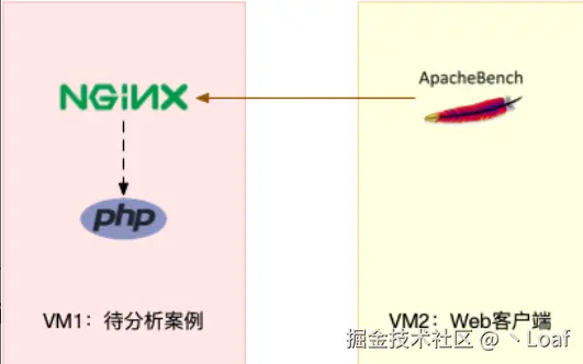 - 预先安装 docker、sysstat、perf、ab 等工具,如 apt install docker.io sysstat linux-tools-common apache2-utils