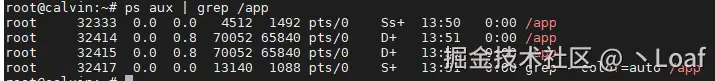 root     32417  0.0  0.0  13140  1088 pts/0    S+   13:51   0:00 grep --color=auto /app