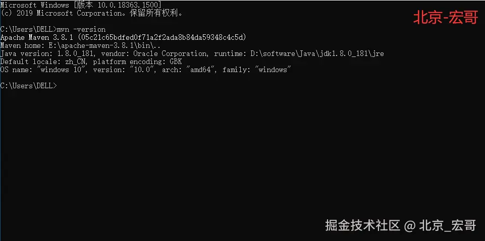 1.Cmd->mvn -version,成功则出现以下界面,如下图所示: