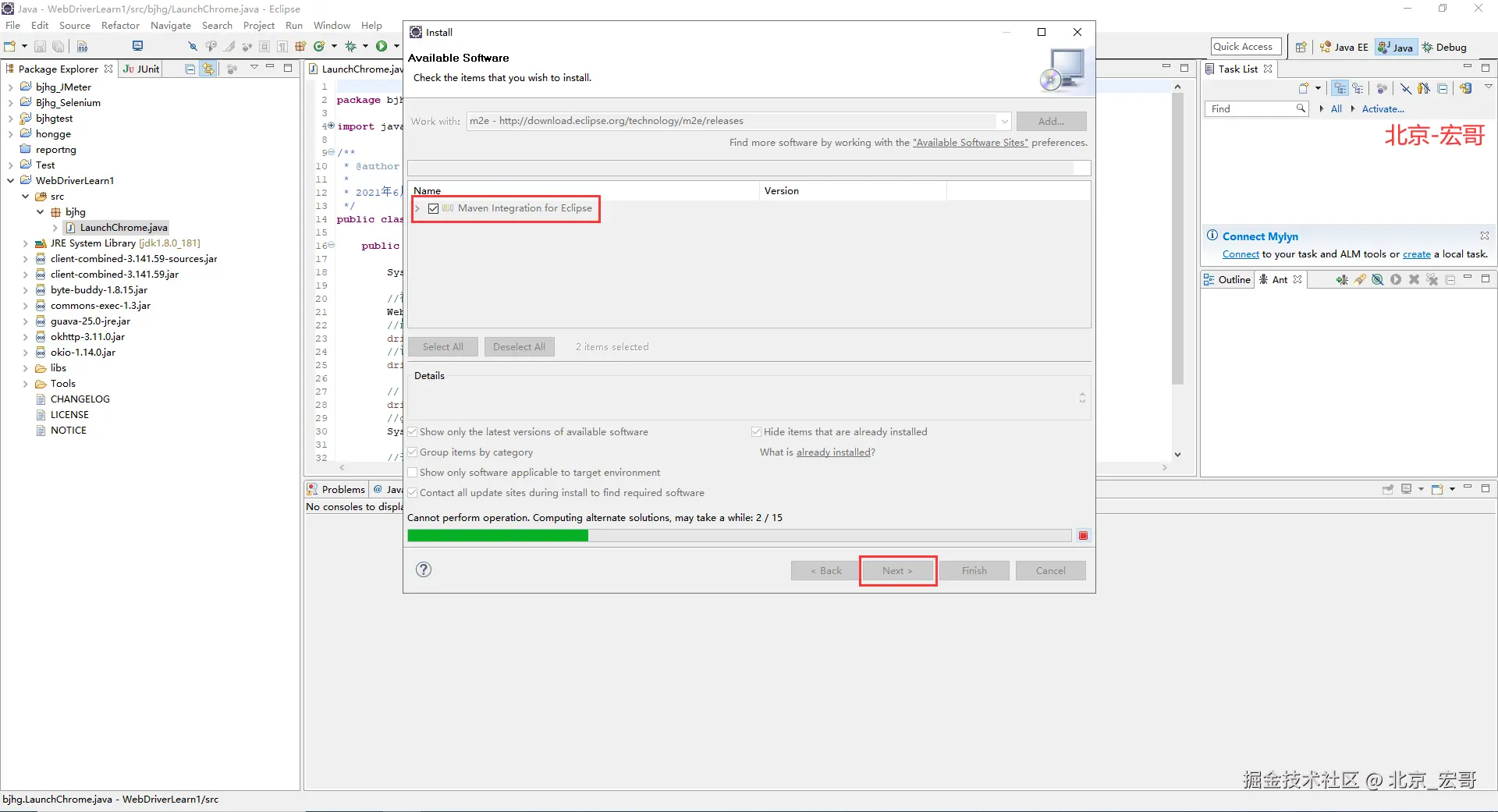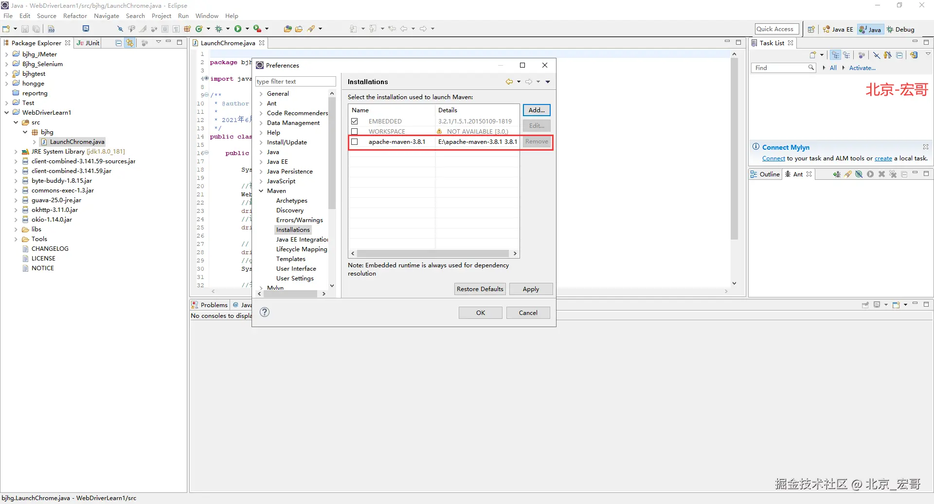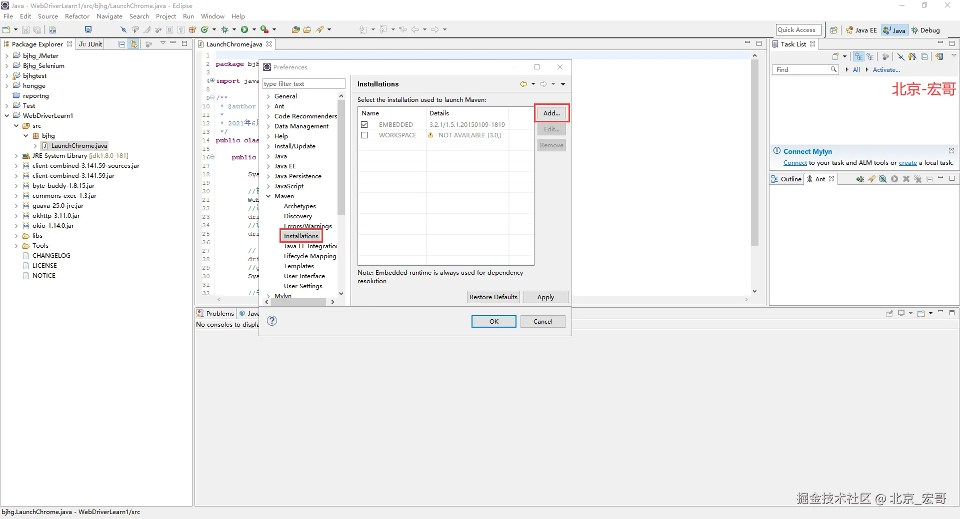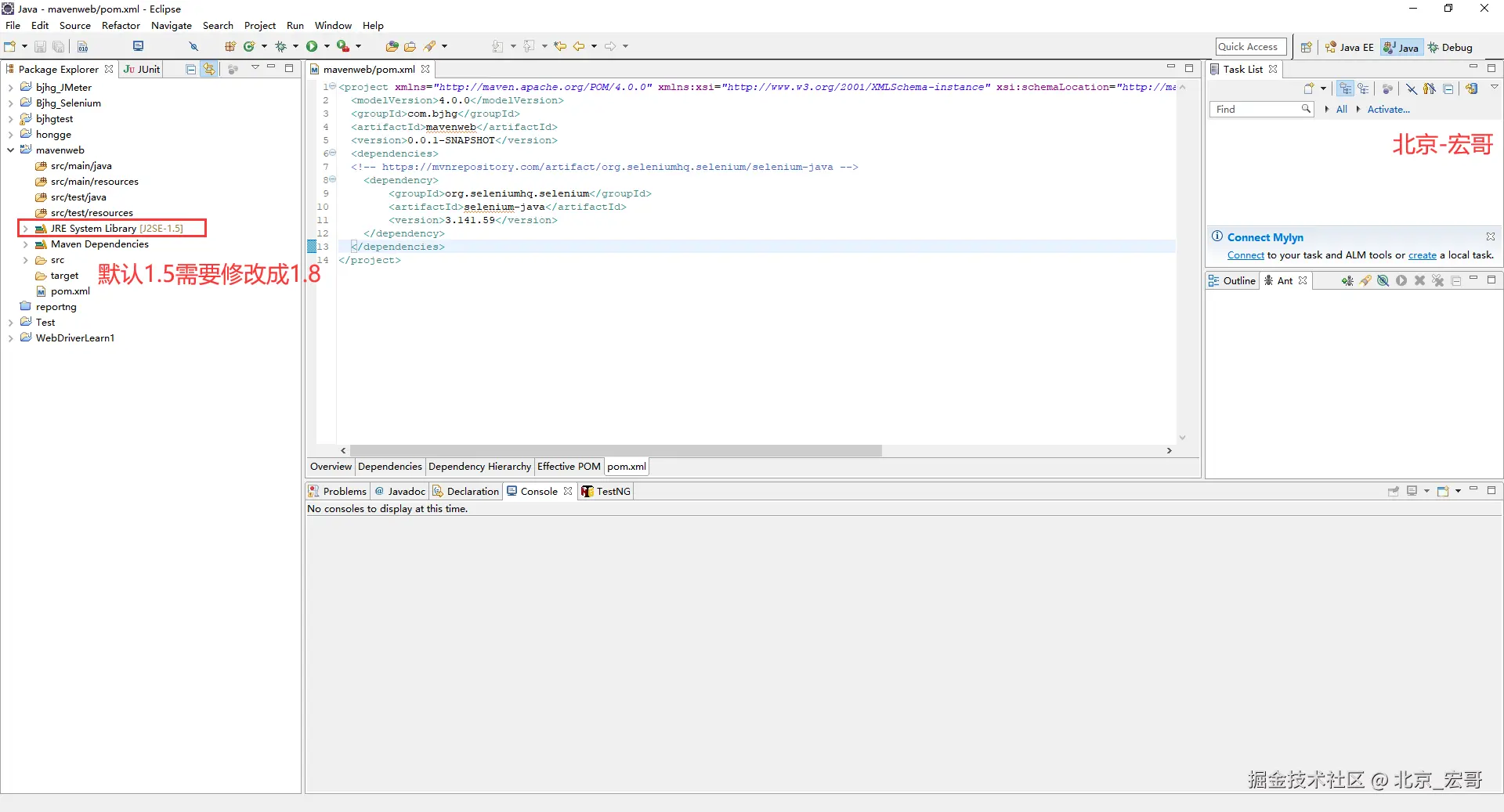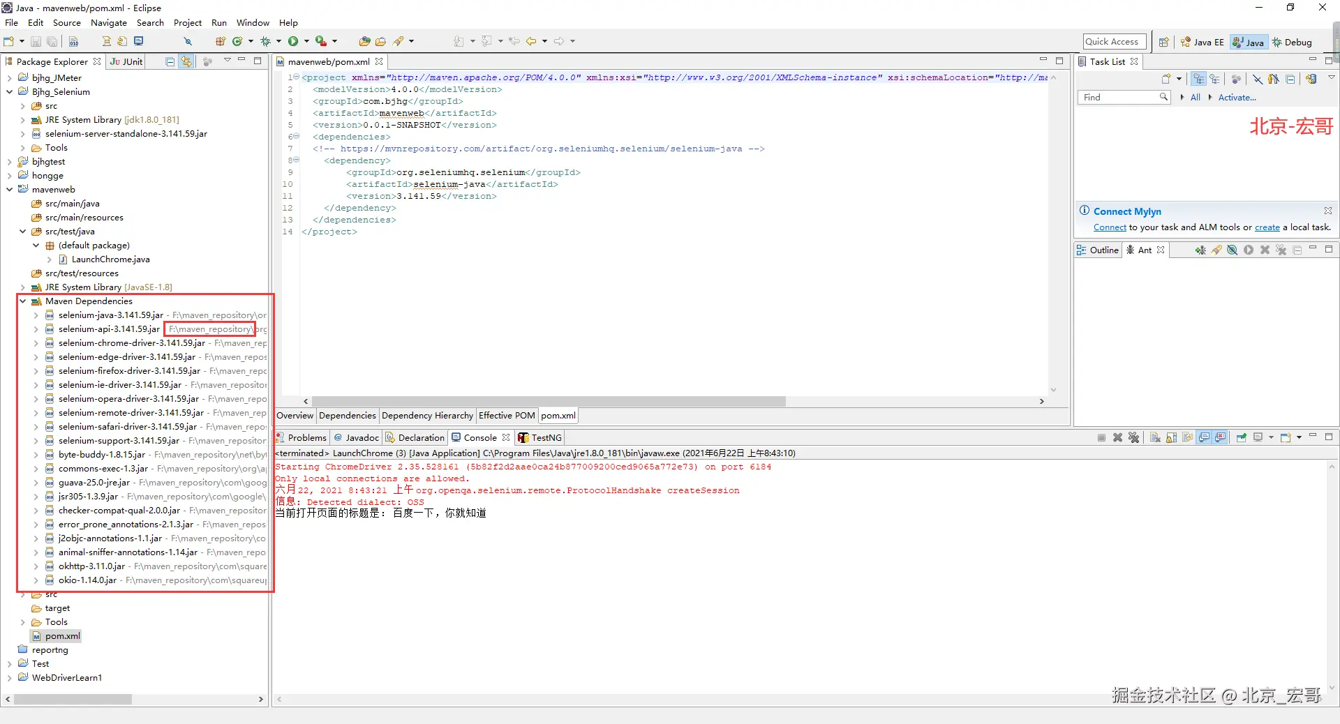 Apache Maven是一个软件项目管理和综合工具。基于项目对象模型(POM)的概念,Maven可以从一个中心资料片管理项目构建,报告和文件。由于现在企业和公司中Java的大部分项目都是基于Maven, 因此宏哥为了照顾到企业或者公司用的java项目中用到maven的童鞋或者小伙伴们,这里也简单的介绍和分享一下。在Maven项目中使用Selenium. 非常简单。