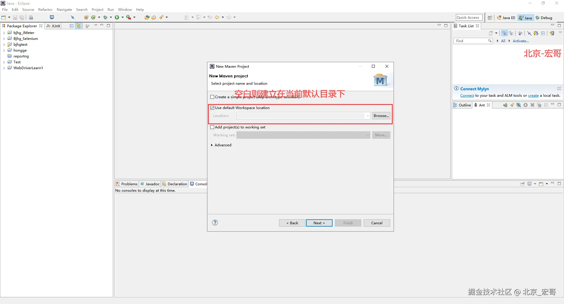 3.选择创建后的工作区——项目存放的地址。如下图所示: