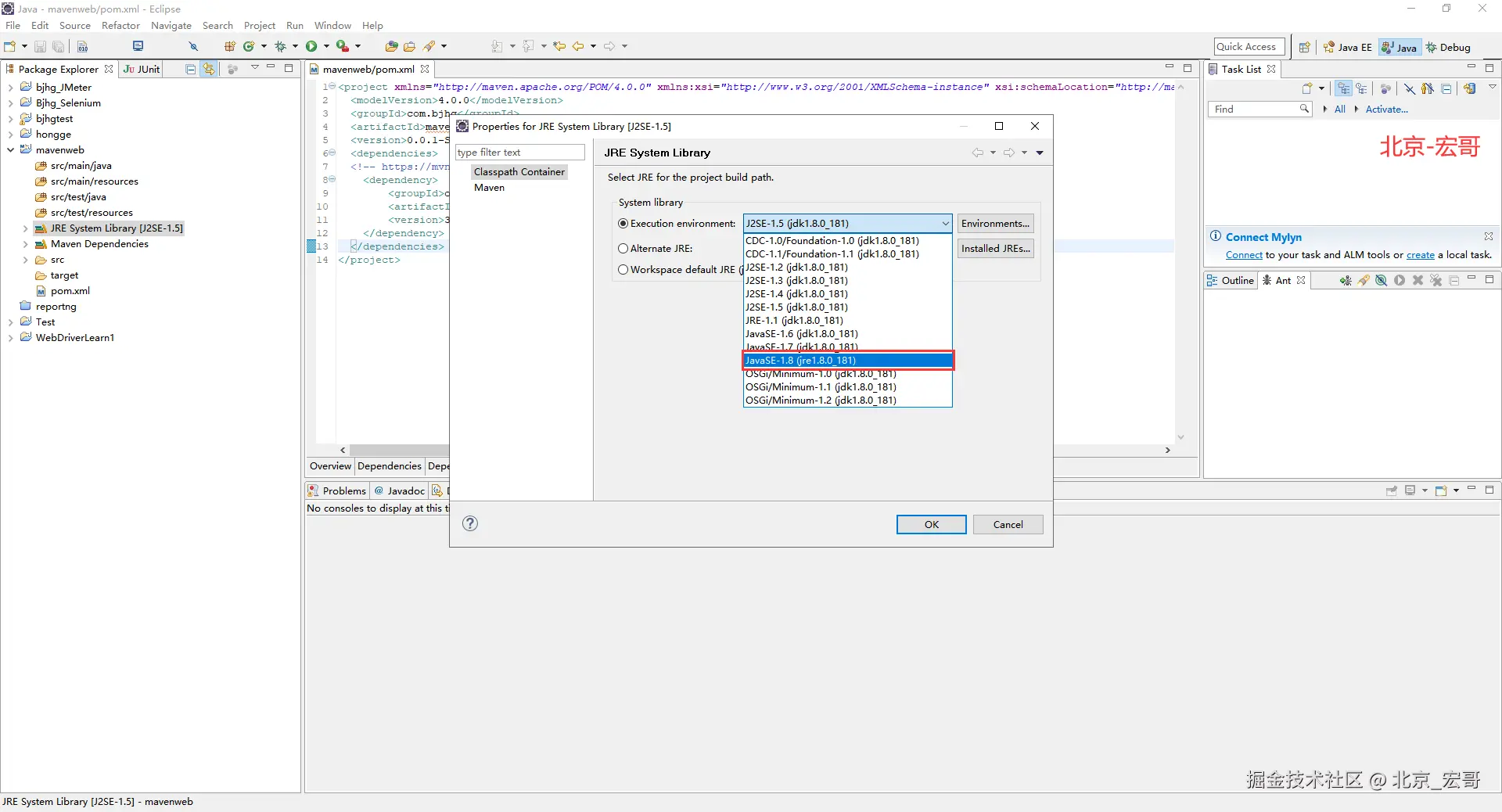 2.选择javaSE-1.8,如下图所示: